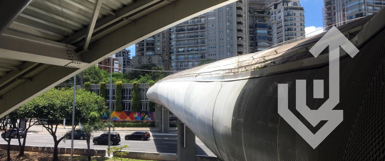 O entorno da Estação Cidade Jardim, então, é a ironia final. Nome que sugere a presença de urbanidade e acolhimento, mas que, do outro lado da estação, na margem que não possui trilhos, entrega somente suburbão rico com cara de feudo urbano. Não passa de um espaço encastelado, praticamente impermeável à cidade e à convivência pública. Aliás, mesmo o acesso ao Parque do Povo, a poucos metros da estação, requer a utilização de mais uma passarela, para além daquela que conecta a plataforma às bilheterias.